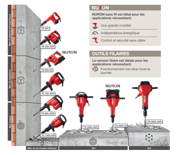 - Very powerful TE-S demolition hammer for heavy-duty chiseling in concrete, with Active Vibration Reduction (AVR)
